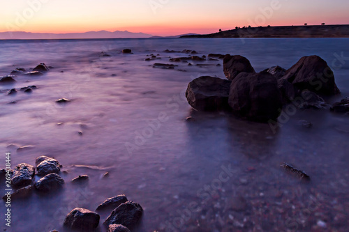 Beautiful Rocky Beach Sunset Landscape Long Exposure Images