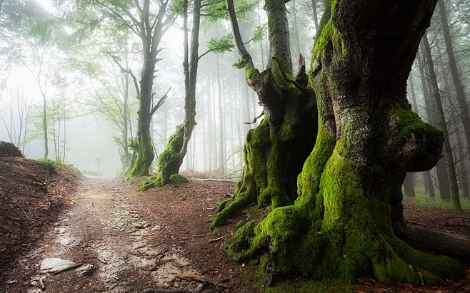 Nature Landscape Mist Path Forest Sunrise Moss Trees