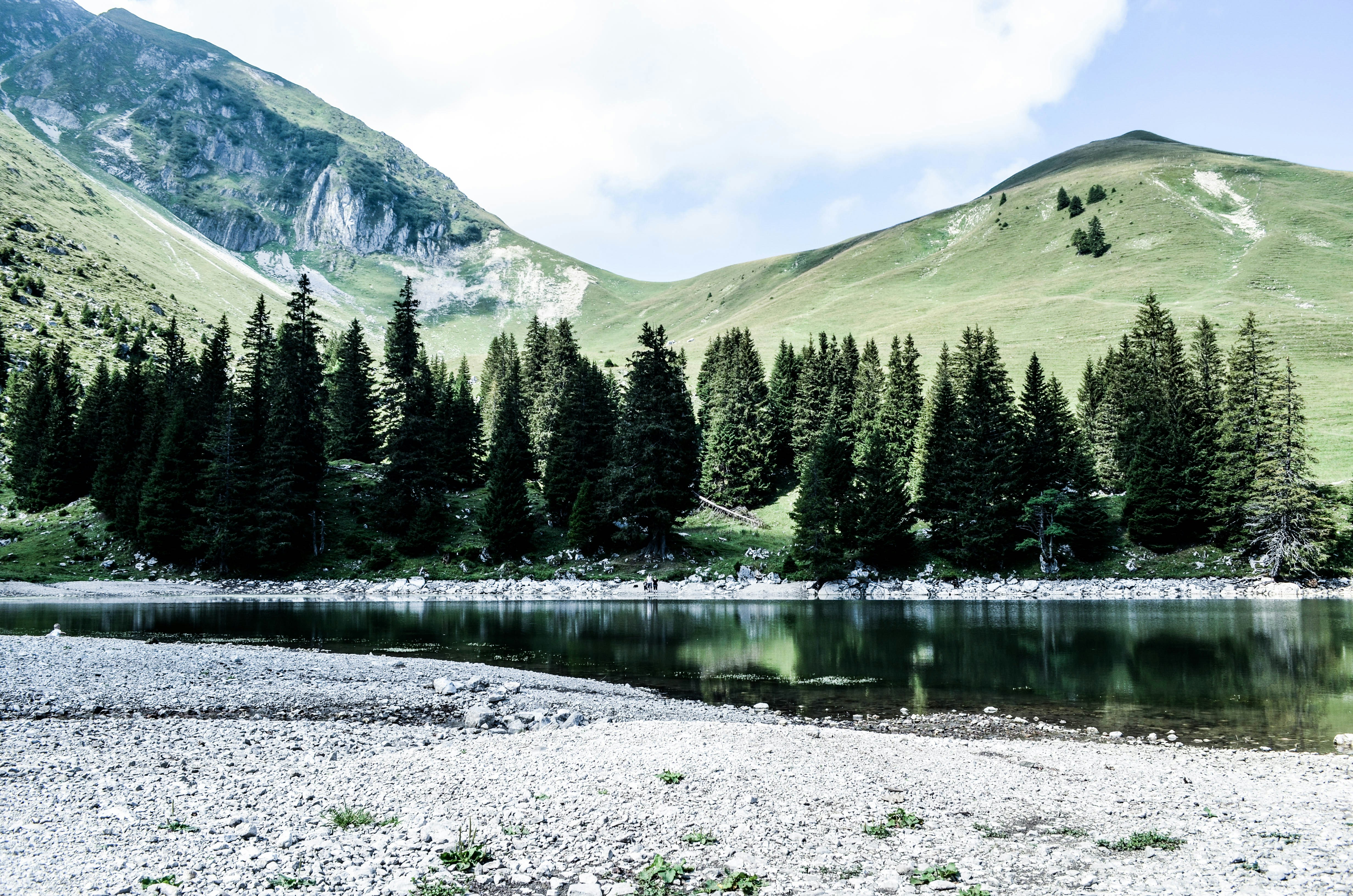 Free Images Beautiful Calm Waters Cloudy Conifers Dark