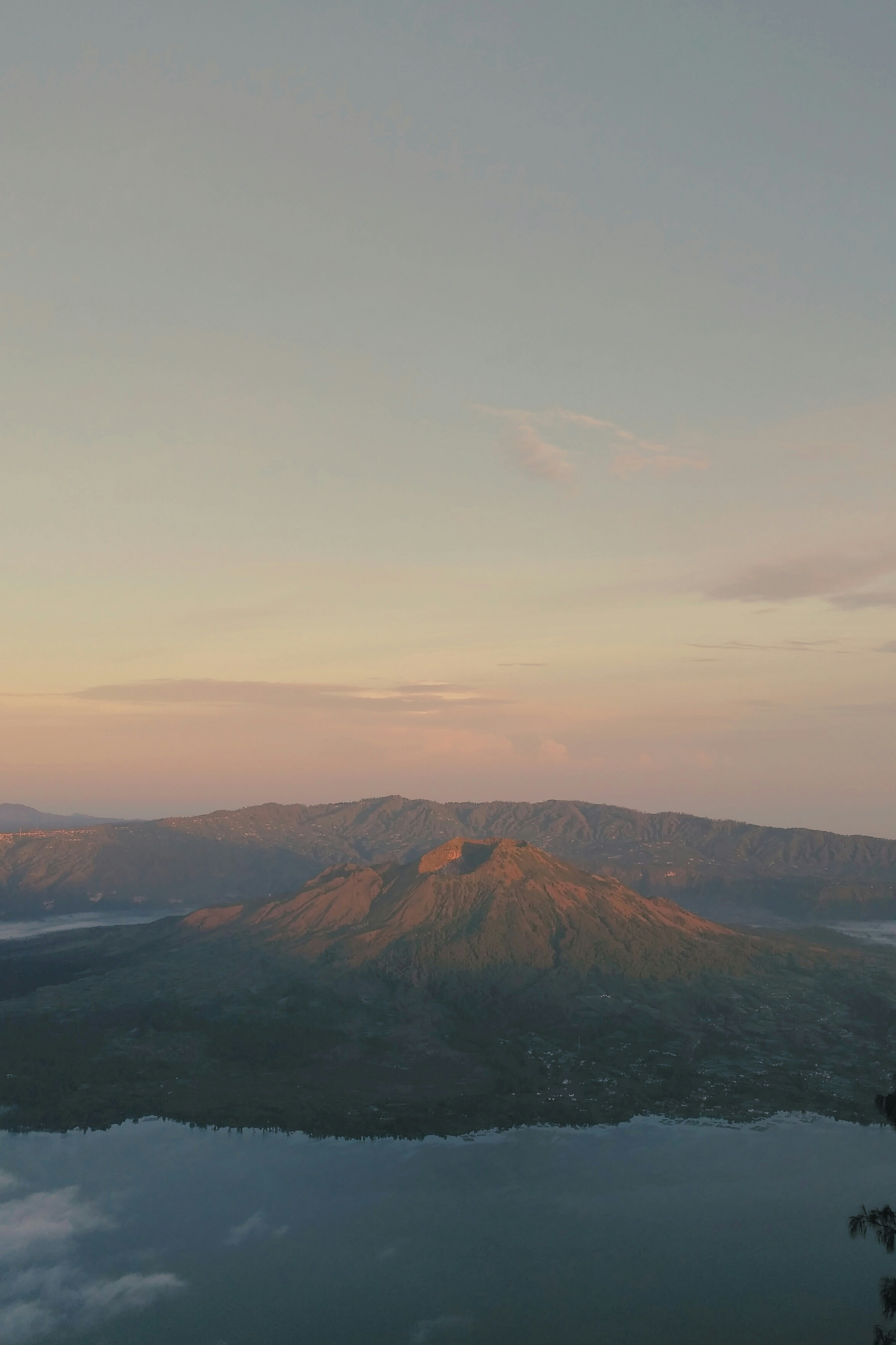 Beautiful View Sunrise Tree And Mist At Batur Volcano Kintamani Bali Indonesia Sunrise View Of