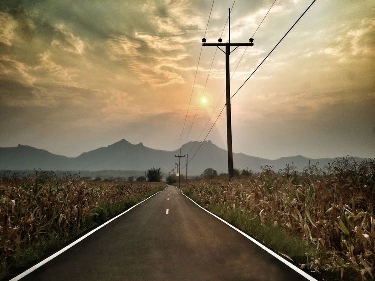 Nature Landscape Power Lines Mountain Sunset Road