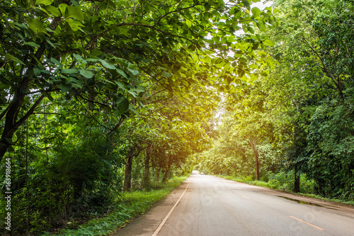 Road Lane Walkway Path With Tunnel Green Trees In Forest Beautiful