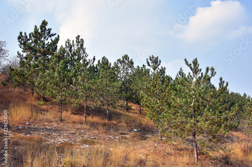 Autumn Countryside Landscape With Green Trees In Nature