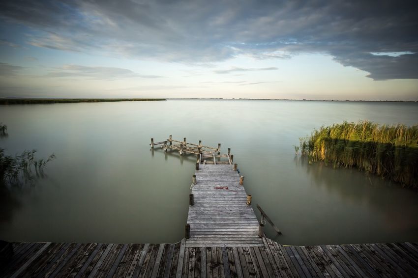 Clouds Long Exposure Landscape Nature Wooden Surface