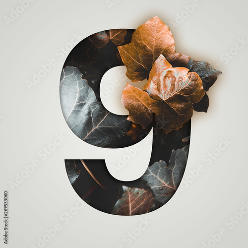 Nature Concept Creative Number With Colorful Leaves On A