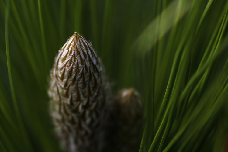Nature Forest Grass Cones Macro Depth Of Field Trees