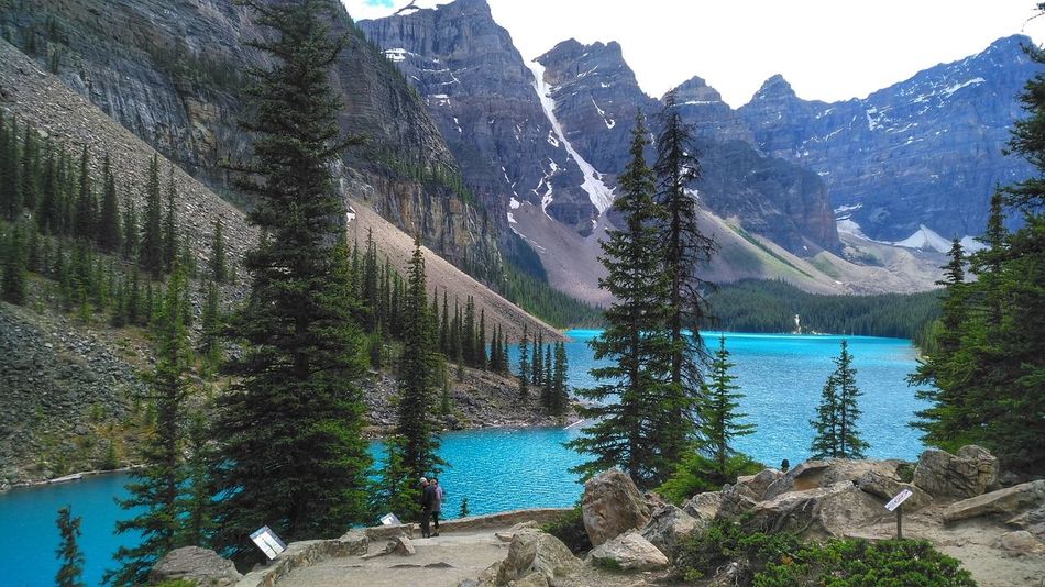 Lake Moraine Banff National Park Lake Pine Trees Wooden