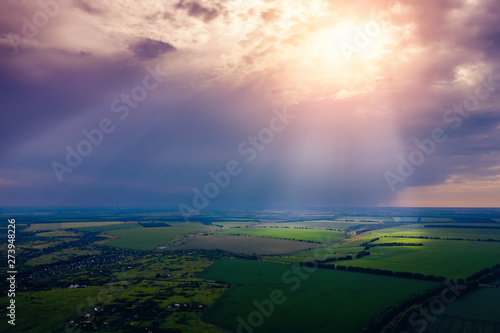 Aerial View Of Sunset On The Sky With Sunrays A Royalty