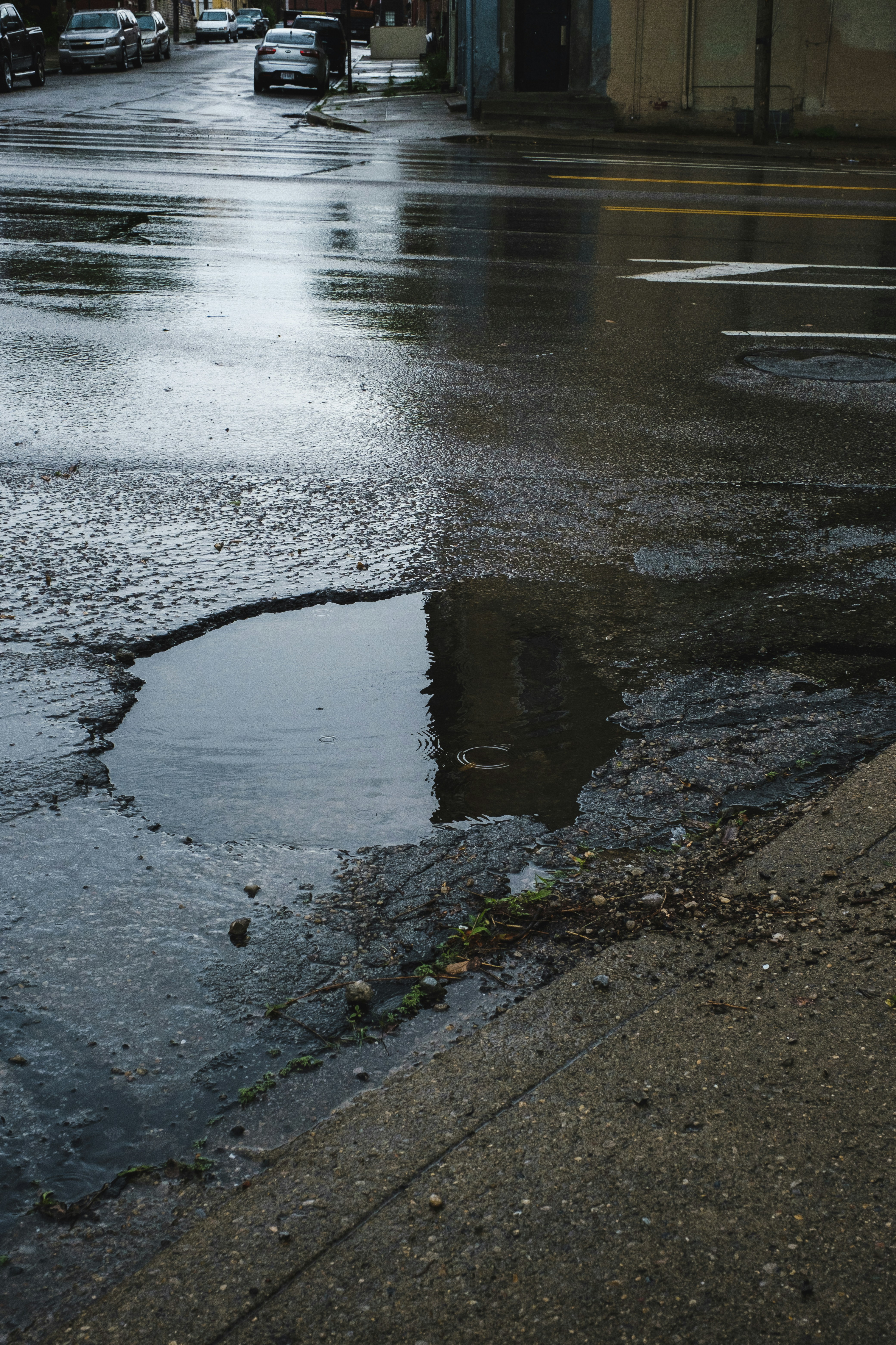 Blue Green Photo Of Water Puddle In Lane After Rain Storm