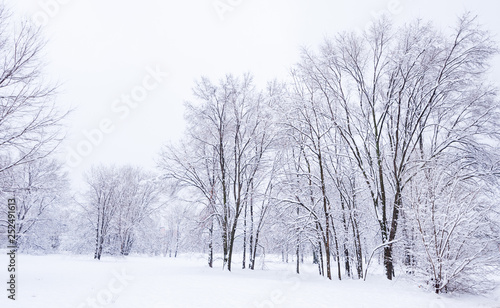 Frozen Trees In The Park Or Forest With Snow And Ice