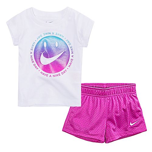 Toddler Girl Nike Sparkly Smiley Graphic Tee Mesh Shorts Set