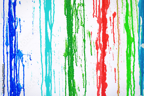Muticolored Streaks Of Paint Leeking On White Background