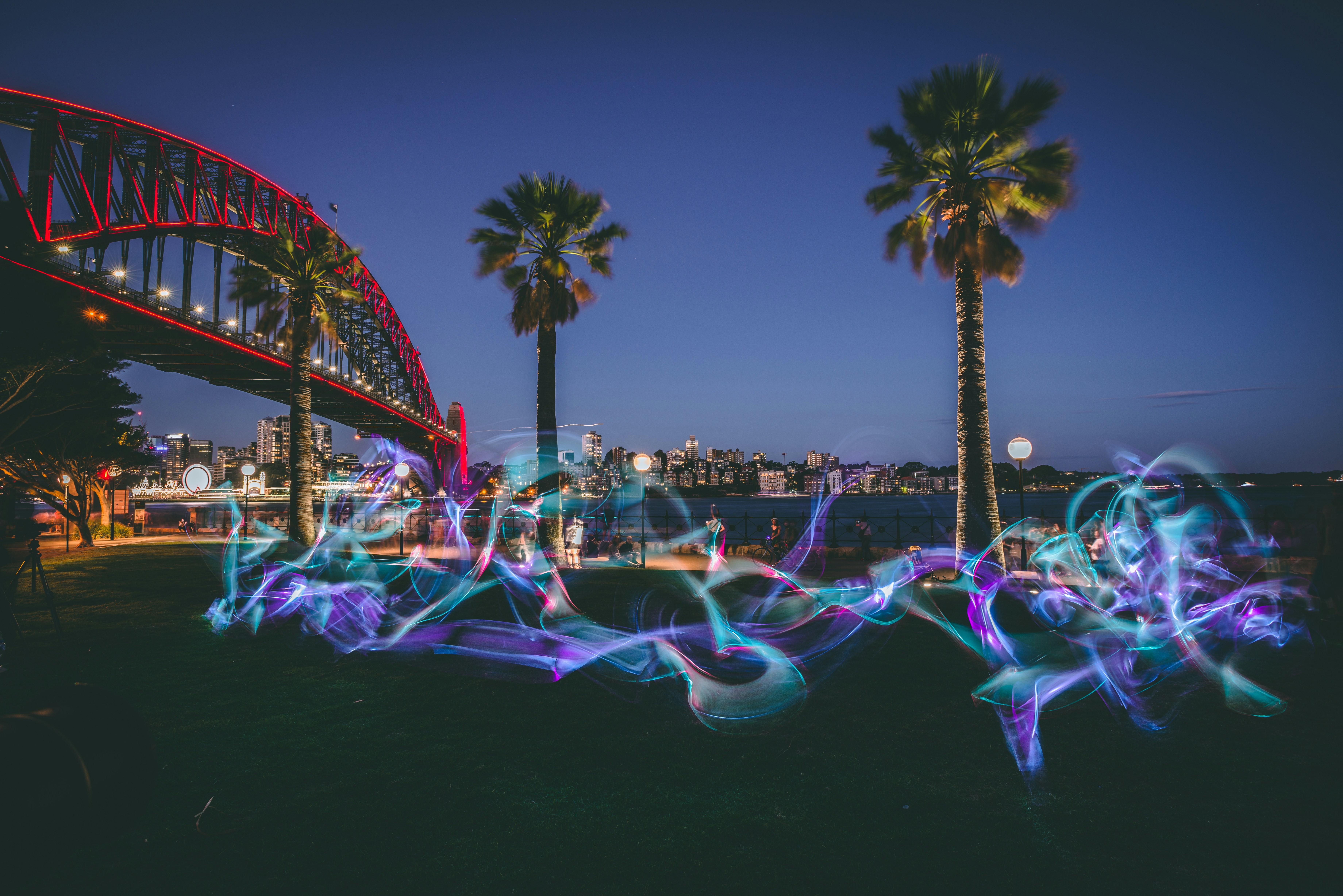 Sydney Harbour Bridge Palm Trees From Dawes Point Park In
