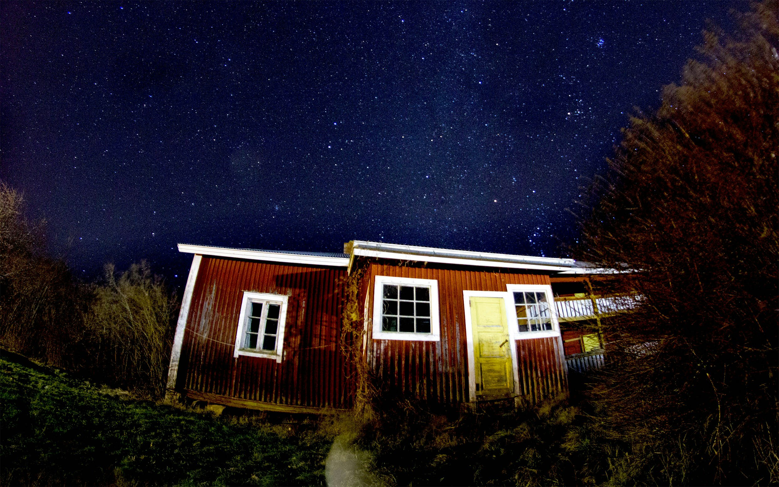 Beige Wooden House Under Starry Night Free Stock Photo