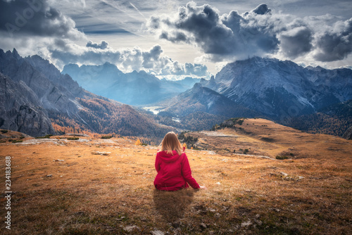 Young Woman Is Sitting On The Hill Against The Majestic