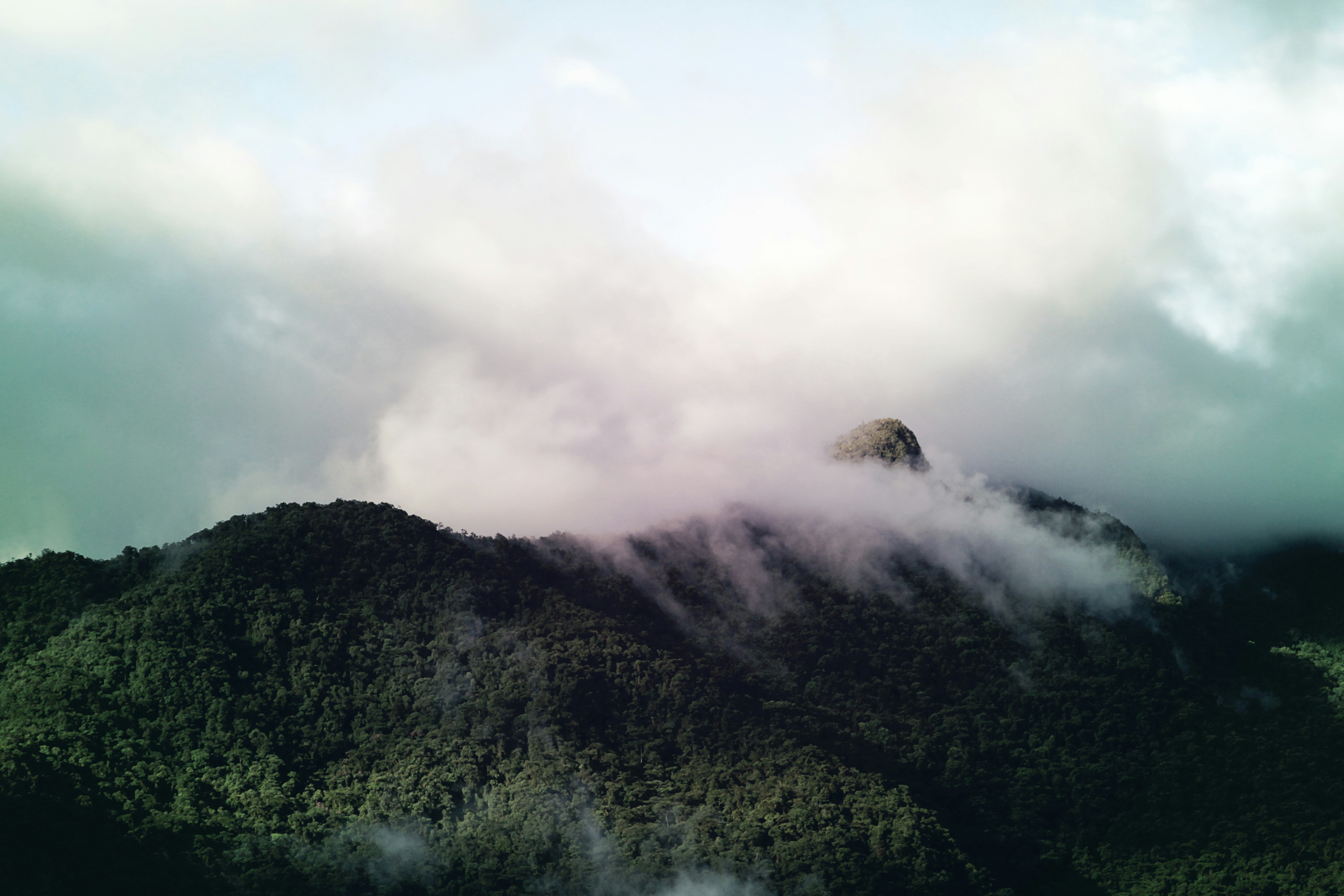 Free Photo Cloud Covered Mountain Top On Landscape