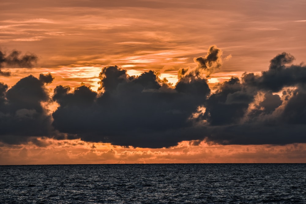 Spectacular Dramatic Dark Sky At Sunset With Clouds Over Sea