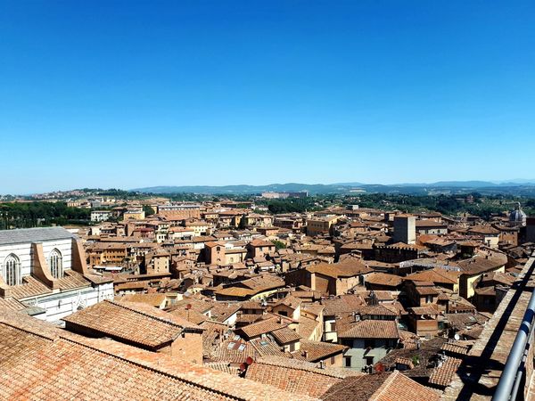 Daylight View To Tall City Buildings Old Town And Blue Sea