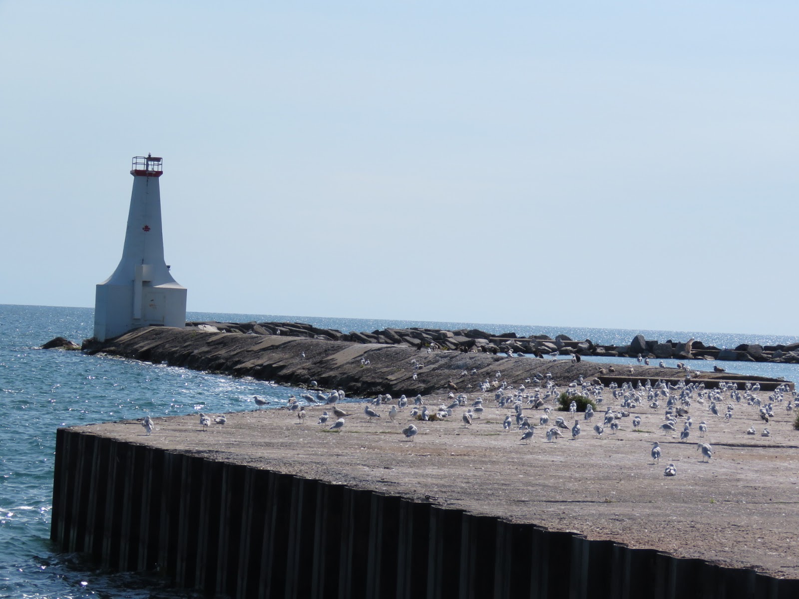 Holland Michigan Lighthouse And Seagulls Stock Photo