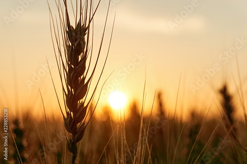 Silhouette Of Grain Or Wheat Plants Backlit By The Sun At