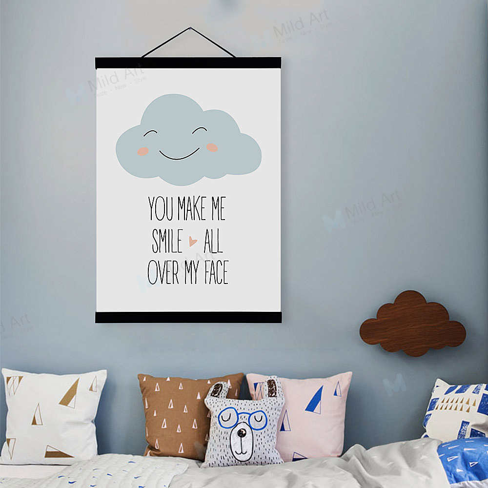 Minimalist Typography Smile Cloud Quotes Framed Scroll Art