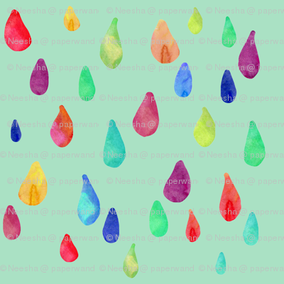 Rainbow Rain Drops Mint Back Wallpaper Paperwand