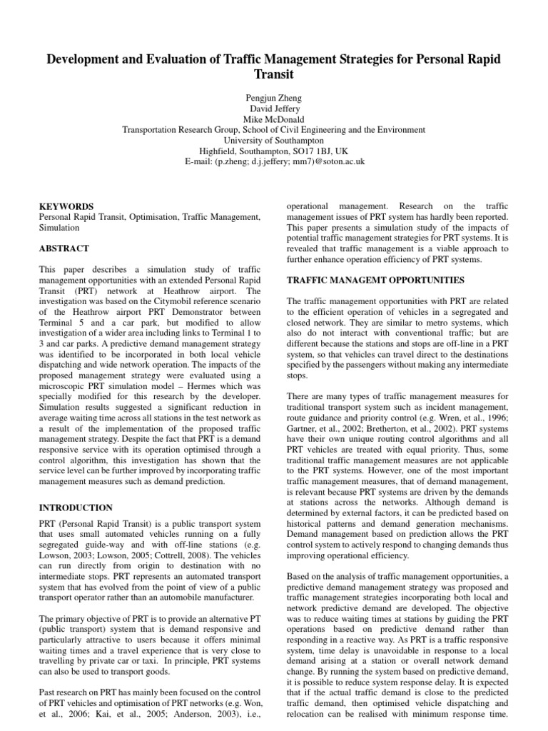 Pdf Distributed Management Of Personal Rapid Transit Prt