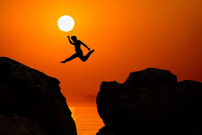 Rock Men River Sunset Silhouette Mountain People Rock