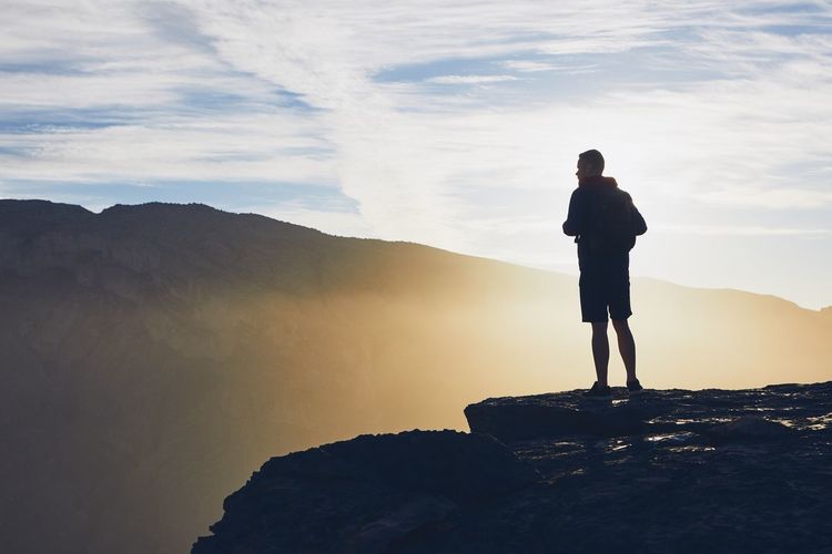 Man On Rock Formation Premium Pictures Photos Images