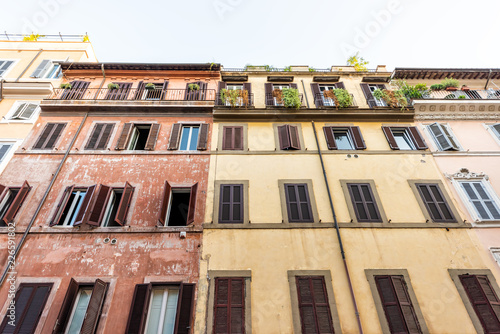 Rome Italy Street In Historic Center Looking Up At Facade
