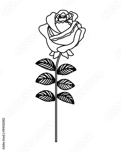 Outline Nature Rose Plant With Branch Leaves Vector