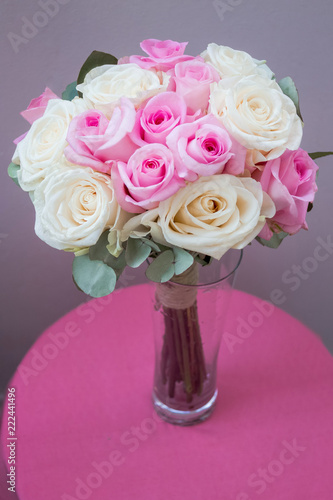 Wedding Bridal Bouquet Of White And Pink Roses Closeup