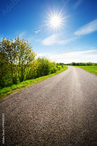 Asphalt Road In Countryside On Sunny Spring Day Route In Beautiful
