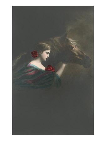 Sad Woman With Horse Art Print By Art Com