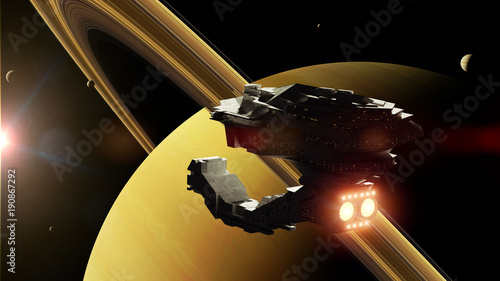 System Science Fiction Spaceship Flying Between Stock