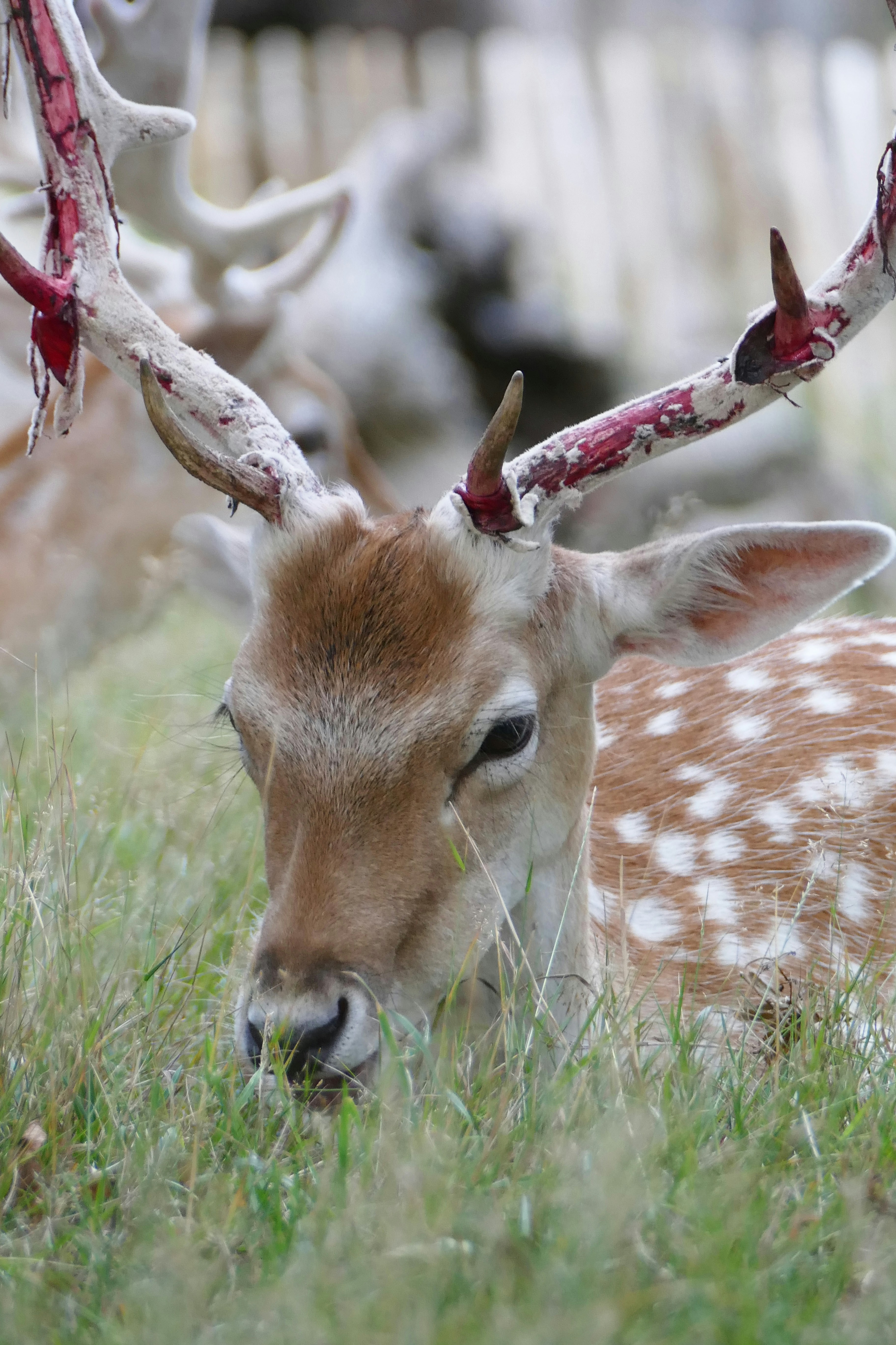 Sitting Deer Depth Of Field Grass Animals Wallpapers Hd