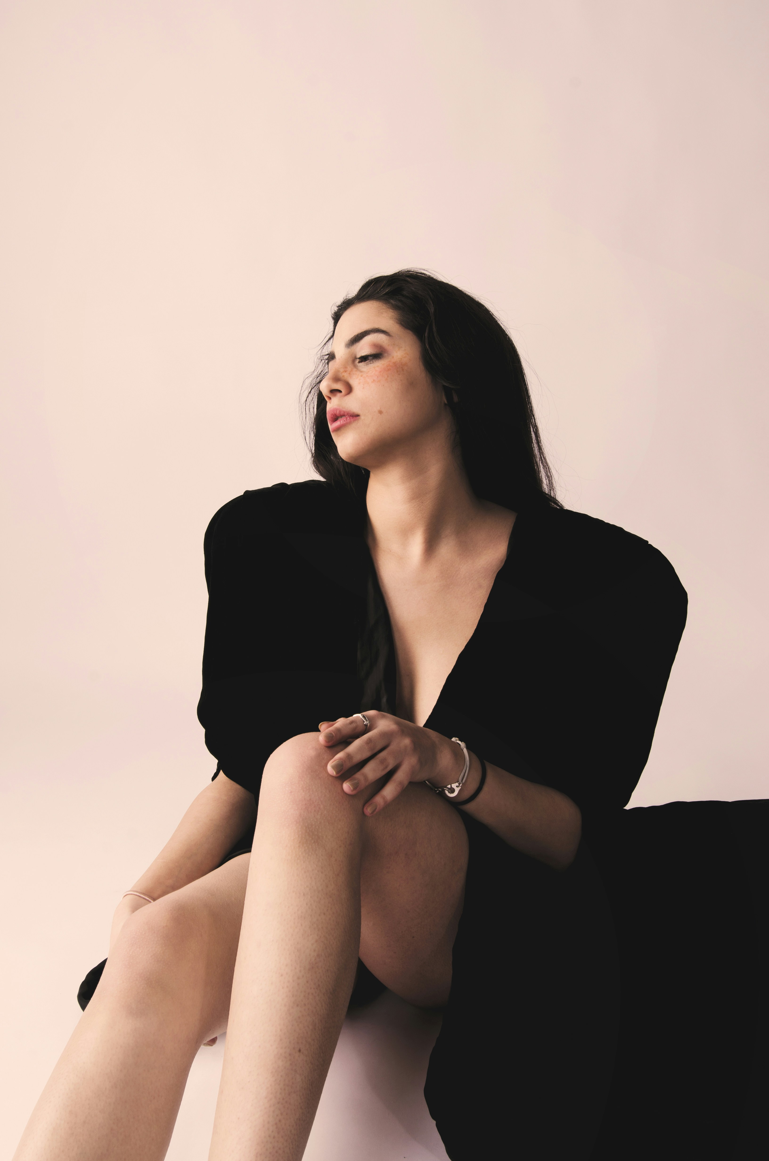 Download 1536x2048 Brunette Sitting Model Heels Women
