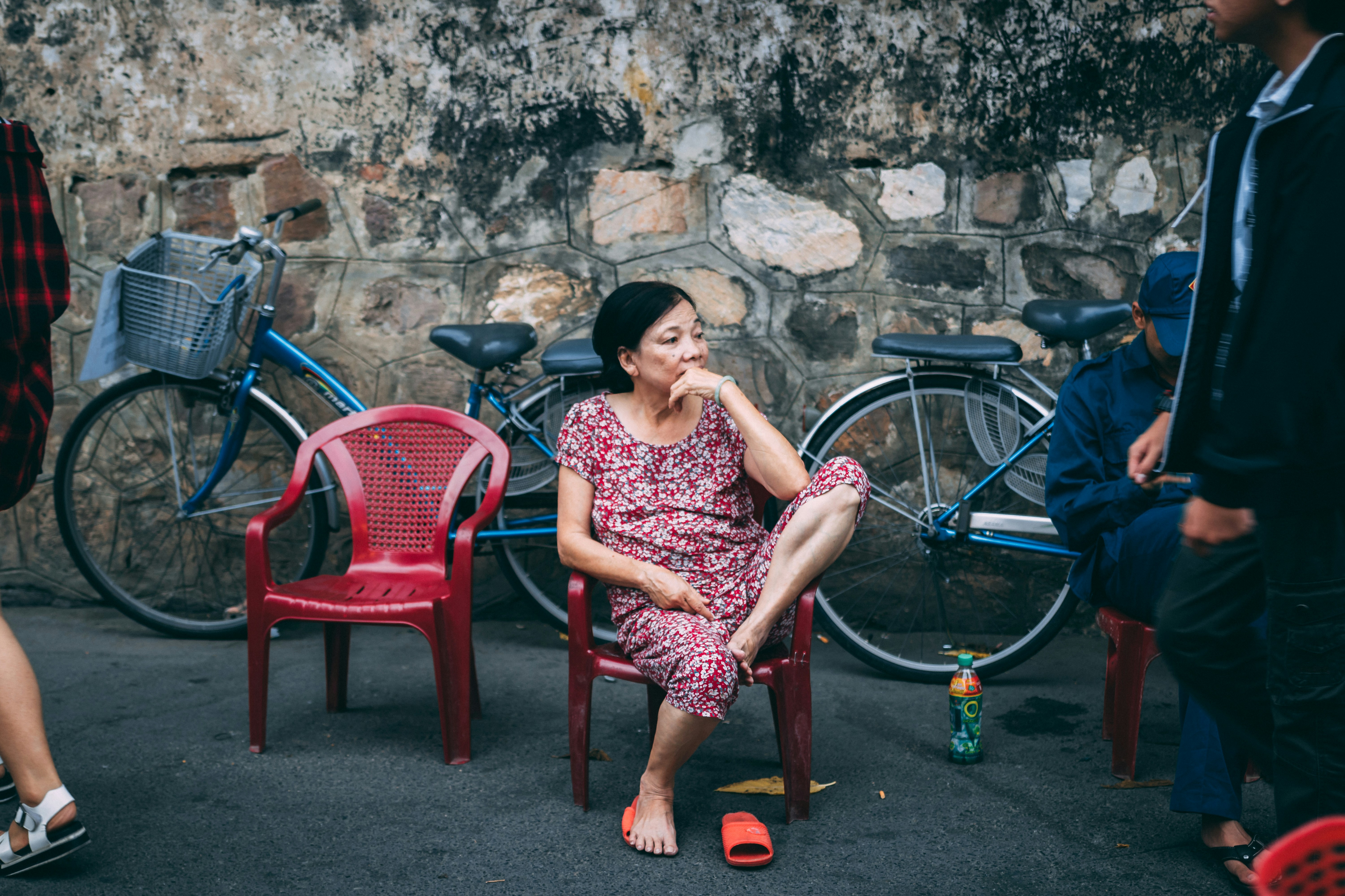 Hd Wallpaper Woman Sitting On Armless Chair On Road Women