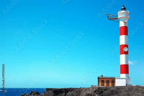 Beautiful View Of Colorful Lighthouse On Blue Sky And Ocean