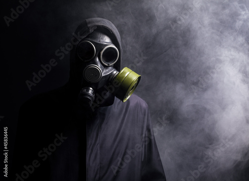 A Man In A Gas Mask In The Smoke Buy This Stock Photo And