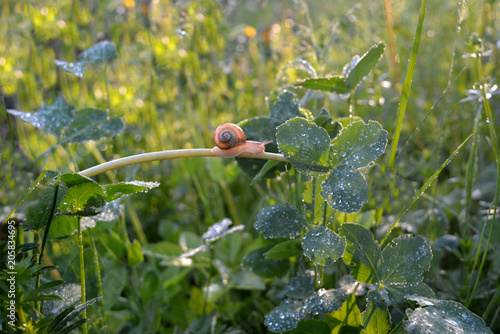 Slow Life Of Snail With Green Background And Nature Light