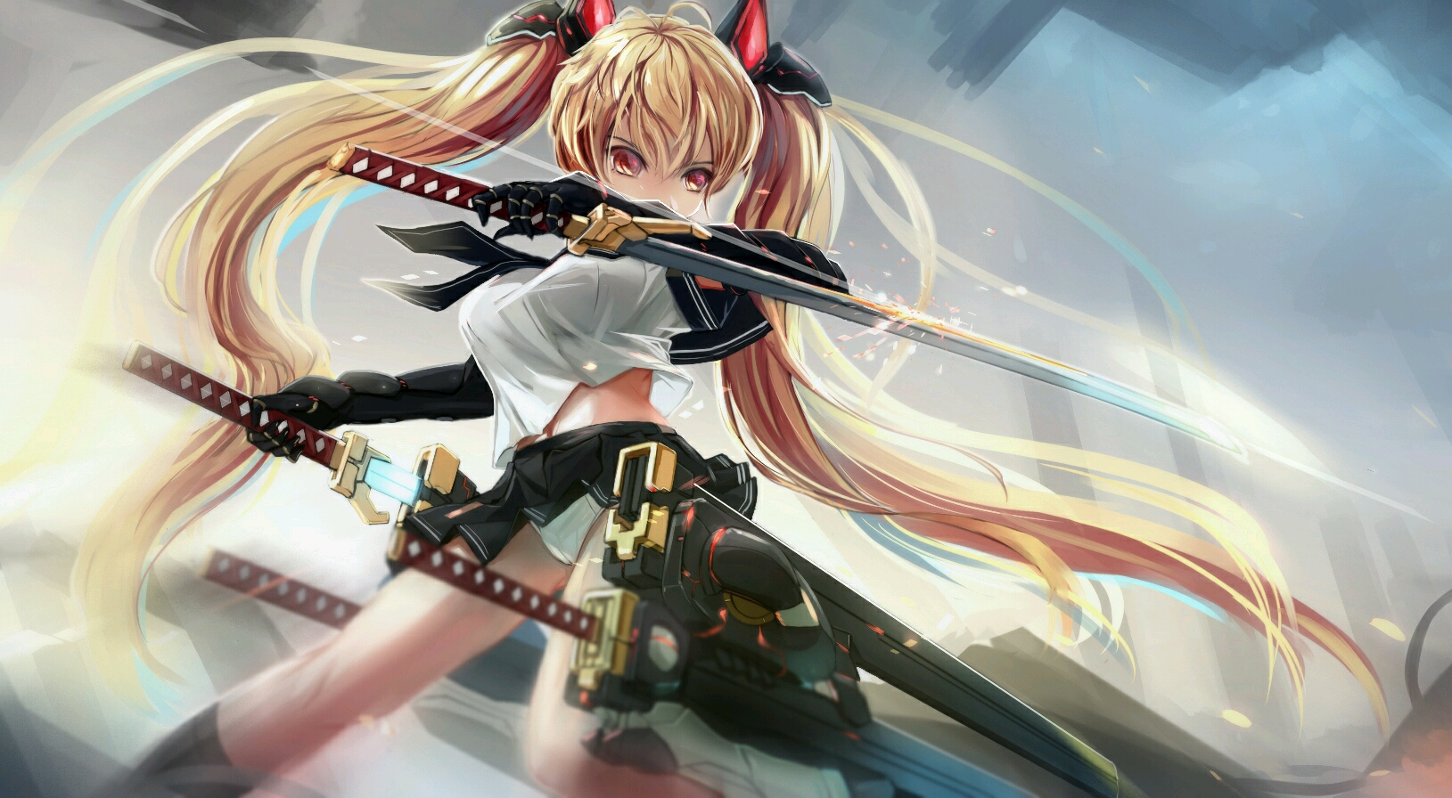 Aliasing Animal Ears Bell Bicolored Eyes Blonde Hair Blush