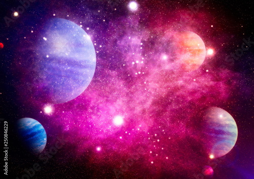 Blue And Purple Nebula On Black Space Background