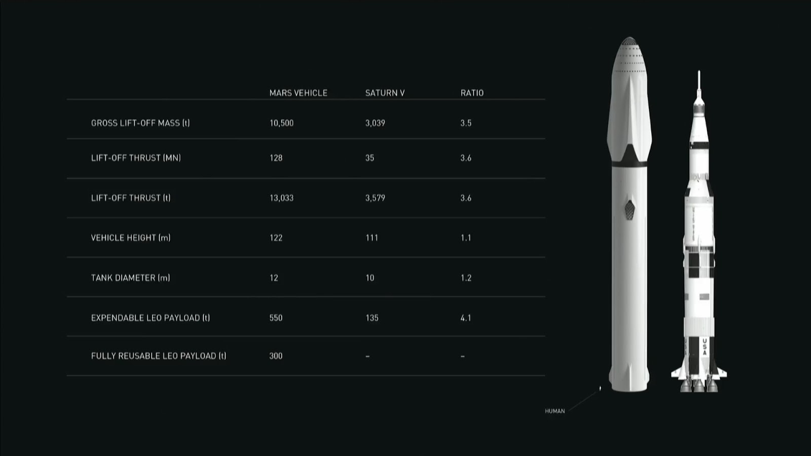 As the rocket burns through its cryogenic liquid methane and oxygen fuel the booster will have a total liftoff thrust of 128 mega newtons 28000000 pounds. The design includes fully reusable launch vehicles human rated spacecraft on orbit propellant tankers rapid turnaround launchlanding mounts and local production of rocket fuel on mars via in situ resource utilization. Spacexs starship and super heavy rocket represent a fully reusable transportation system designed to service all earth orbit needs as well as the moon and mars. Spacexs elon musk unveils interplanetary spaceship to colonize mars.