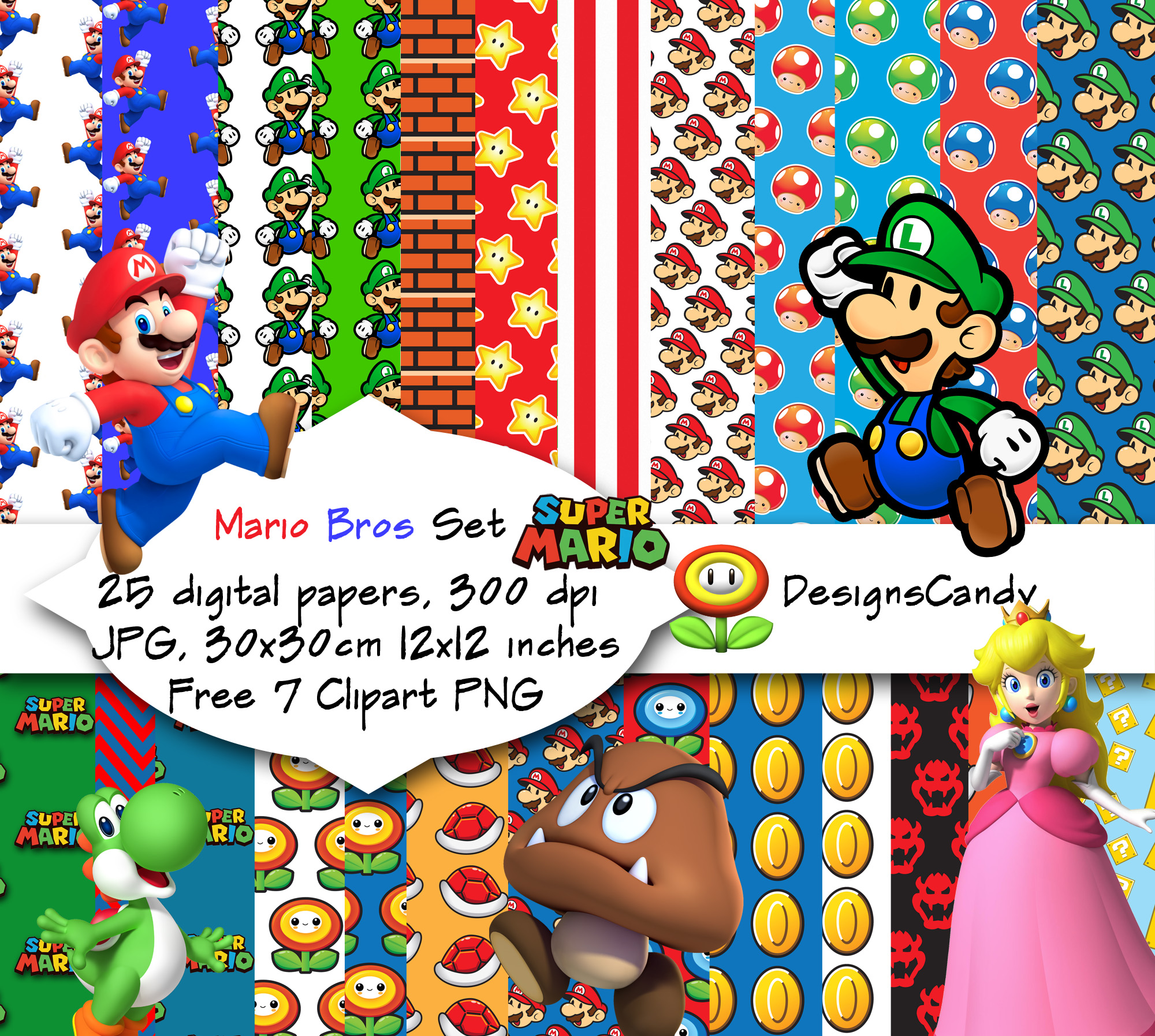 Mario Bros Inspired Digital Paper Pack 12x12 25 Papers Jpg Scrapbook Clipart Free Digital Paper Birthday Party Invitation P C Use