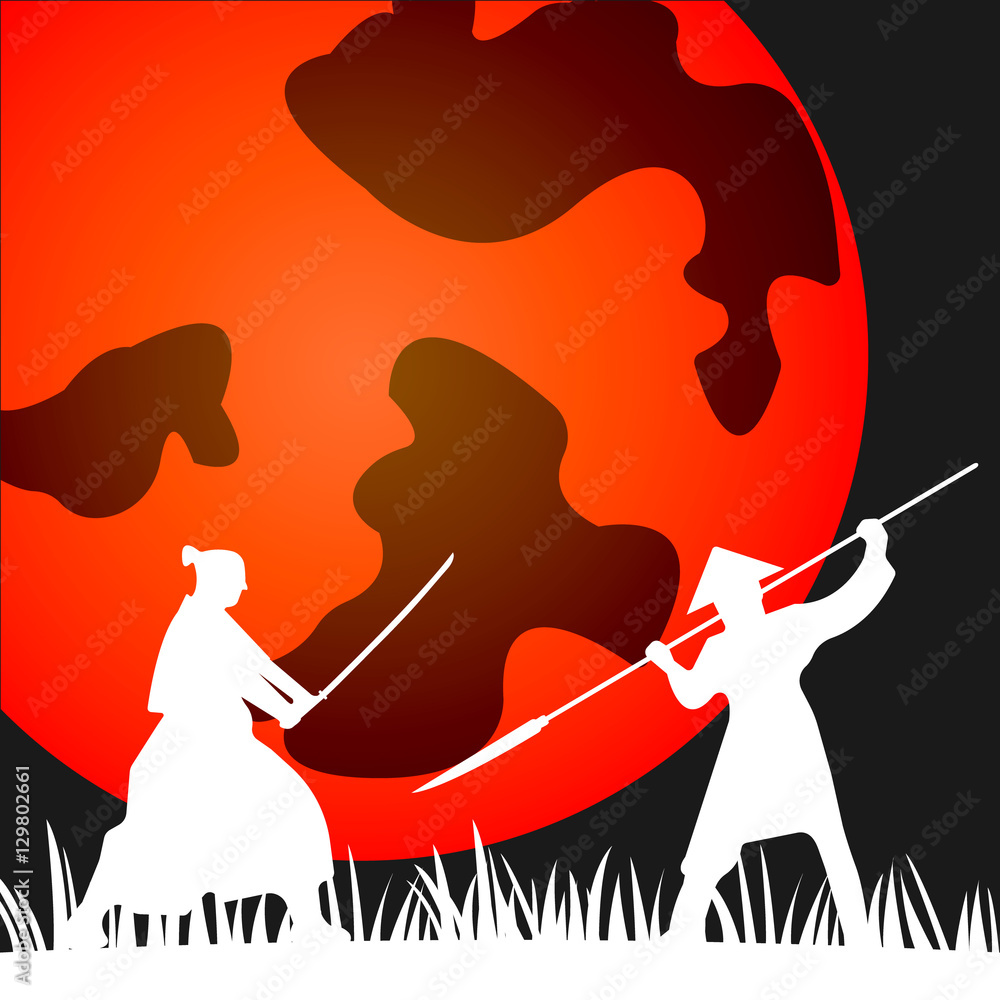 Japanese Samurai Warriors Silhouette Vector Illustration