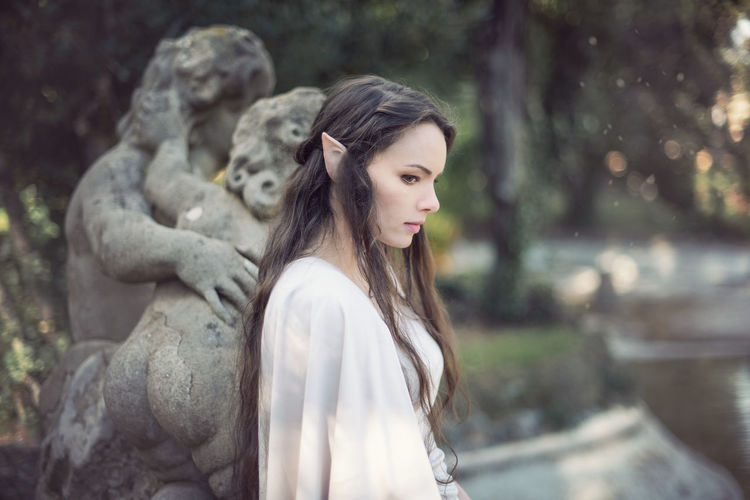 Free Photo Portrait Woman Thoughtful Sad Elf Dream Wreath