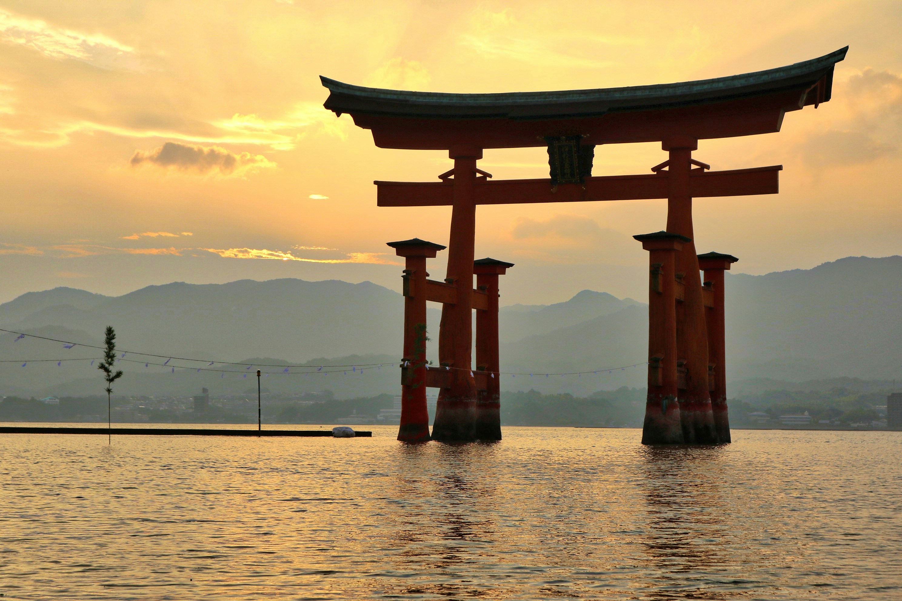View Of Floating Gate Giant Torii Of Itsukushima Shrine On