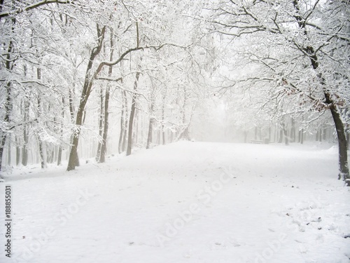 Forest After First Snowfall In The Winter Season Snow