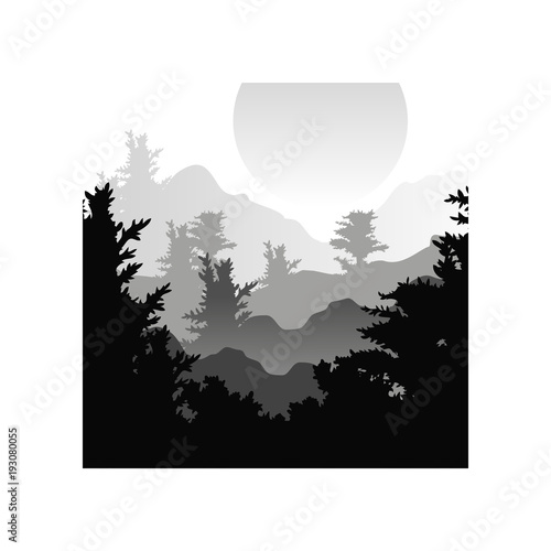 Beautiful Nature Landscape With Silhouettes Of Forest Trees